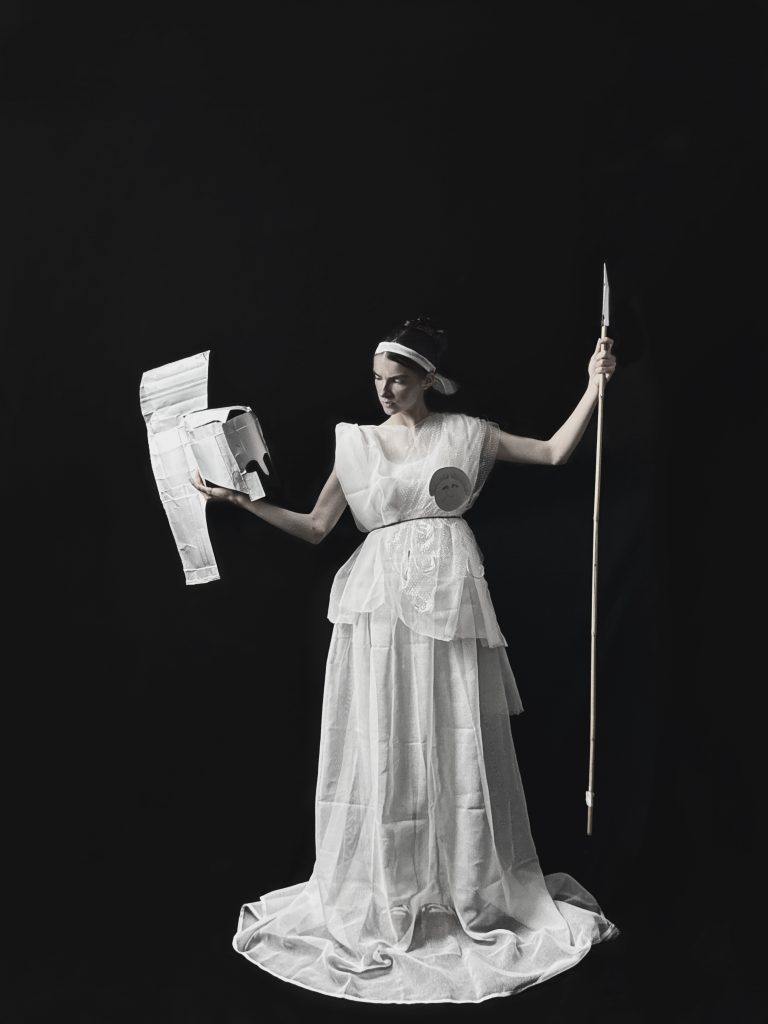 Die Aufgabe der Lernenden war es, ein selbst gewähltes Gemälde oder eine Plastik aus der Kunstgeschichte in Form einer inszenierten Fotografie nachzustellen. Dabei galt eine besondere Herausforderung: Als Requisiten durften ausschließlich bereits gebrauchte Materialien wie Kleidung, Möbel oder Bilder eingesetzt werden.
