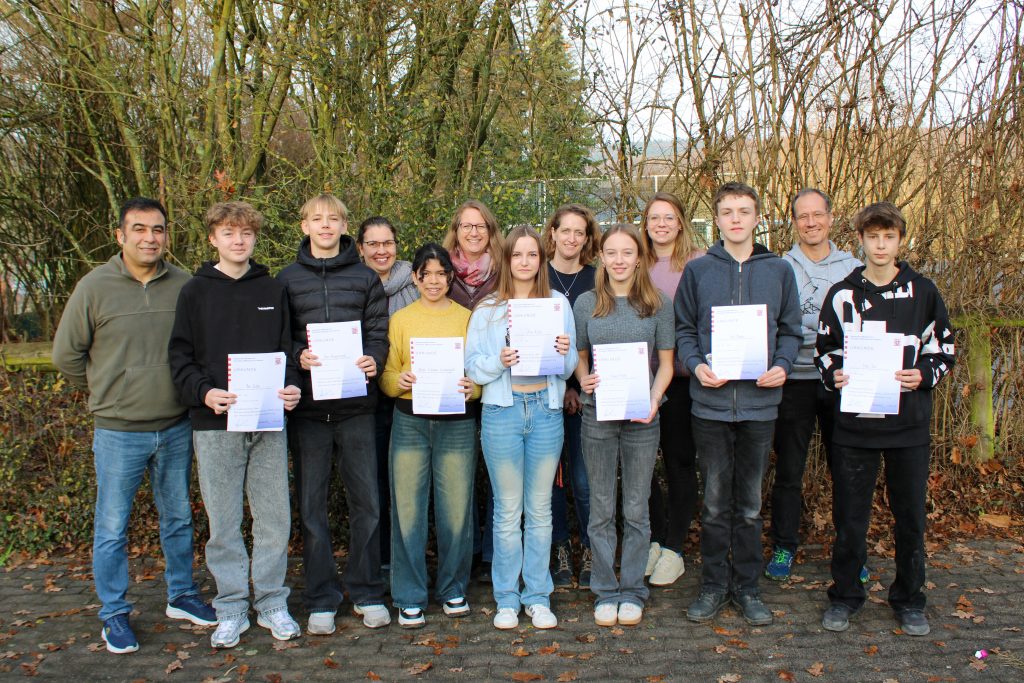 Auch in diesem Jahr haben Lernende der Georg-August-Zinn-Schule wieder erfolgreich am Mathematikwettbewerb teilgenommen. Die Sieger und Platzierten wurden nun durch Stufenleiterin Laura Zieres und Fachsprecherin Lena Adam-Rothenheber im Rahmen einer kleinen Siegerehrung ausgezeichnet. Die Lernenden haben sich nun für den Kreisentscheid qualifiziert.