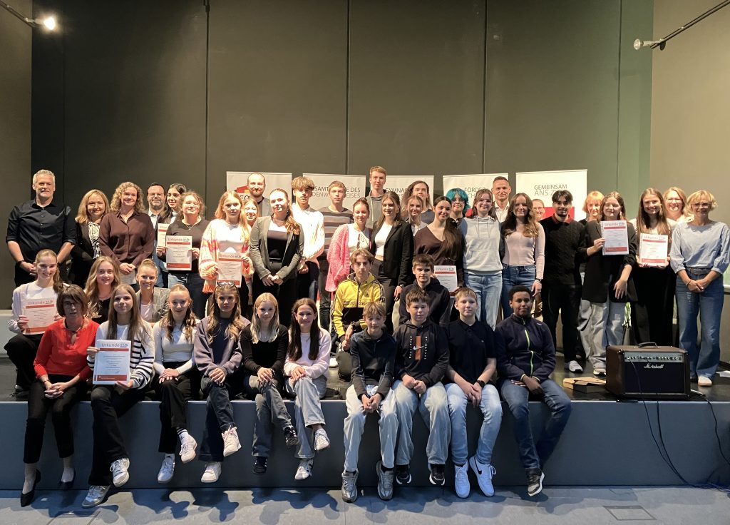 Im Rahmen der Preisverleihung des Förderpreises "Stille Helfende – echt stark" der Sparkasse Odenwaldkreis durfte sich die Georg-August-Zinn-Schule Reichelsheim gleich doppelt freuen. Zwei Projekte, die auf beeindruckende Weise zeigen, wie engagiert und kreativ die Schülerinnen und Schüler Verantwortung übernehmen, wurden ausgezeichnet. Einmal mehr wurde bei dieser Preisverleihung deutlich: Die GAZ ist authentisch, lebt ihre Werte und stellt ihre Schülerinnen und Schüler mit ihren Ideen und ihrem Engagement in den Mittelpunkt.