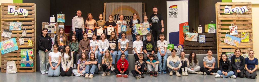 Zum ersten Mal hat die GAZ gemeinsam mit dem Gewerbeverein Reichelsheim e.V. den "Dorfdudd"-Wettbewerb ausgerufen. Schülerinnen und Schüler der GAZ (Jahrgangsstufen 5 - 10) haben in Einzel- und Gruppenarbeit im Rahmen des Kunstunterrichts weit über 200 Motive in Form von Bleistift-, Buntstiftzeichnungen und Gemälden gestaltet und eingereicht.