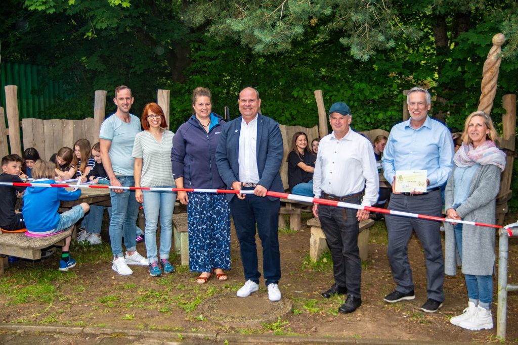 An der GAZ konnte dieser Tage ein weiteres „grünes Klassenzimmer“ eingeweiht werden. Für den kleinen Festakt war der Erste Kreisbeigeordnete und Schuldezernent Oliver Grobeis nach Reichelsheim gekommen, um symbolisch das Eröffnungsband zu durchtrennen und sich bei den verantwortlichen Lehrkräften zu bedanken.