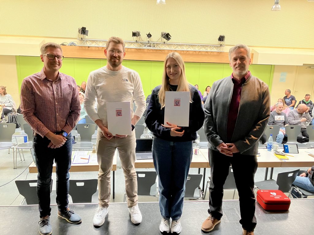 Zu Beginn der Gesamtkonferenz der Georg-August-Zinn-Schule Reichelsheim (GAZ) am 18. März 2025 konnten Schulleiter Direktor Herwig Bendl und der stellvertretende Schulleiter Patrick Eckert gleich zwei Lehrkräften Urkunden des Landes Hessen aushändigen. Der erfreuliche Grund: Die Studienräte Nathalie Albert und Patrick Fiala wurden auf Lebenszeit verbeamtet.