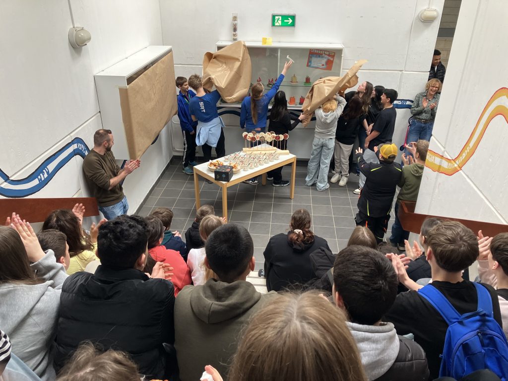 Eine ganze Reihe künstlerischer Werke haben die Schülerinnen und Schüler der Förderschulklasse FÖL1 im Rahmen einer kleinen Vernissage vor dem Lehrerzimmer der GAZ präsentiert. Zu der feierlichen Eröffnung der Vitrinen waren neben dem stellvertretenden Schulleiter Direktor Patrick Eckert und zahlreichen Lehrkräften auch viele Lernende gekommen, die den jungen Künstlerinnen und Künstlern Applaus spendeten.