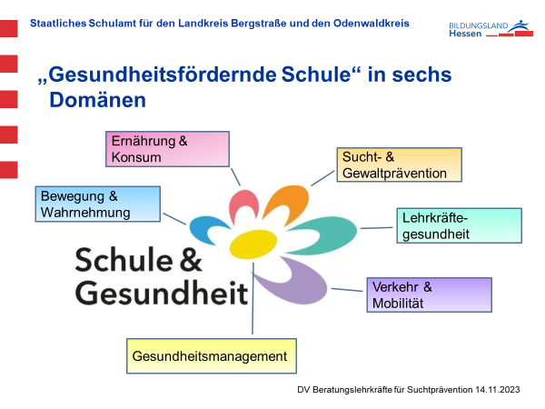 Im Rahmen des vom Hessischen Kultusministerium ins Leben gerufenen Projektes „Schule & Gesundheit in Hessen“ können Schulen für ihre Bemühungen zur Weiterentwicklung eines gesundheitsfördernden Schulklimas das Zertifikat „Gesundheitsfördernde Schule“ erwerben. In der „Gesundheitsfördernden Schule" nimmt das Thema Gesundheit im gesamten Schulleben eine zentrale Stellung ein und alle Mitglieder der Schulgemeinde sollen zu gesundem Lernen und gesundem Arbeiten hingeführt werden