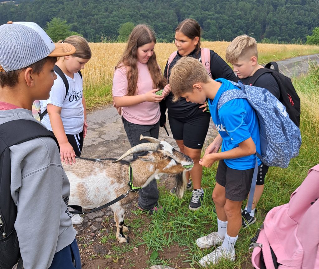 Wandertag vor den Ferien: Klasse 5b unterwegs mit Ziegenbock Louis